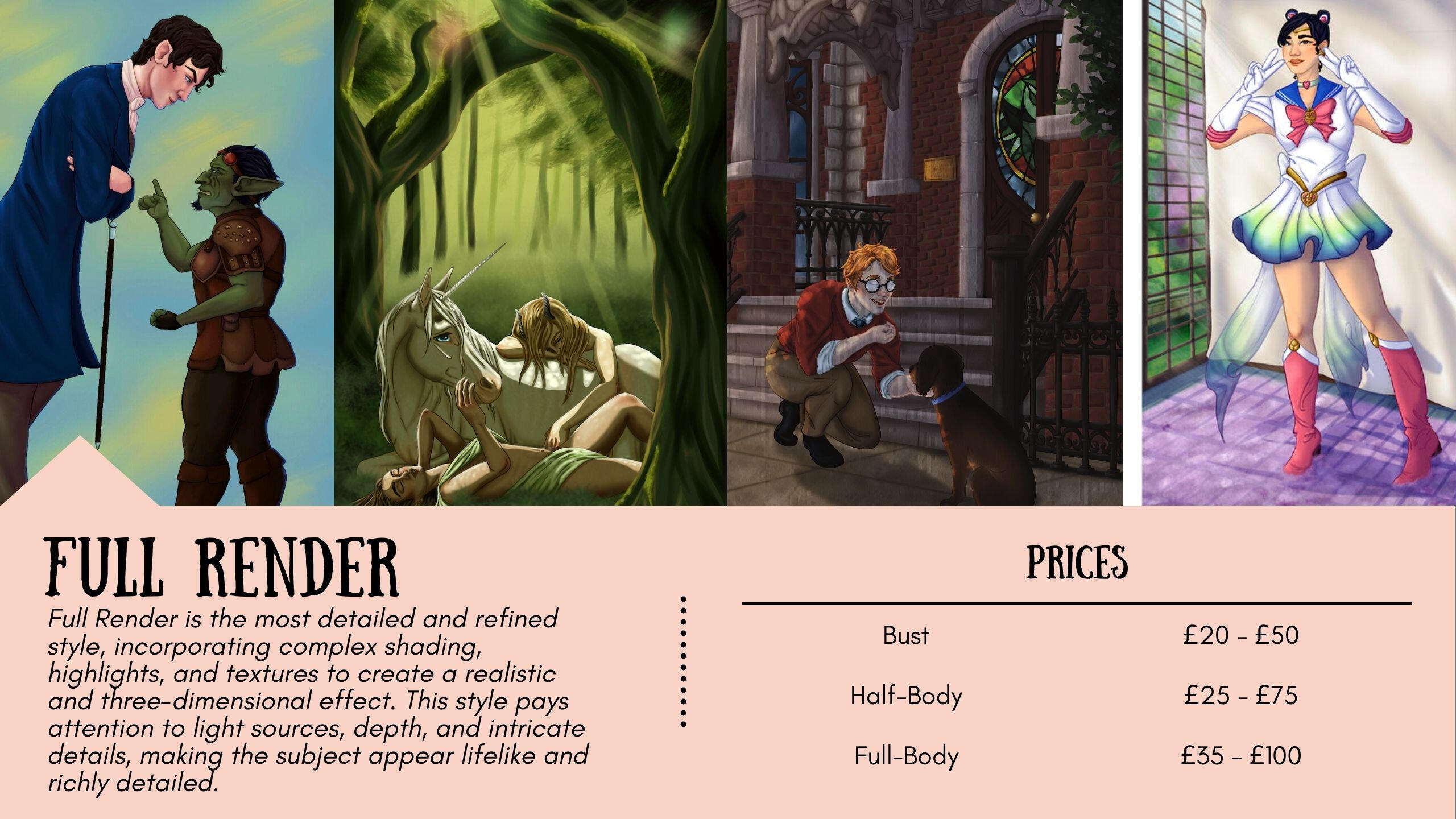 My name is Fate, an independent artist living and working in the UK. I create all matter of art pieces, from high realism pet portraits to DnD illustrations of your party's greatest moments. Whatever the design or piece, I strive to give life to your concept.